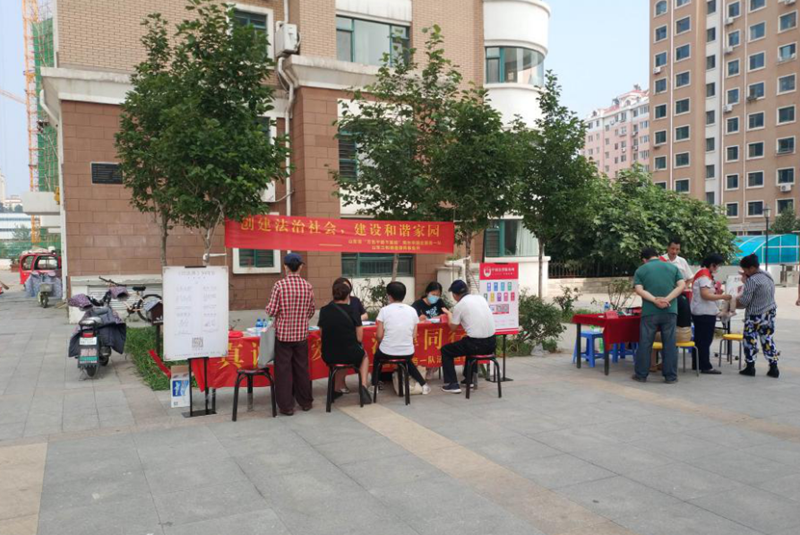 7月16日下午,道壹智能科技(北京)有限公司党委、市国企服务一队联合到芝罘区世学路社区开展了一场“真诚关爱、法律同行”民法典普及与理财咨询服务的“双报到”活动。